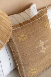 Fas’ın geleneksel dokuma kültüründen ilham alan bu özel kırlent, kaktüs kabuğu lifinden el işçiliğiyle üretilmiştir.