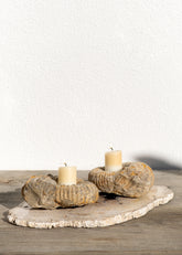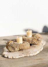 Her kesit, fosilin doğal damar yapısını ve milyonlarca yıllık hikâyesini görünür kılarak ortaya hem işlevsel hem de heykelsi objeler çıkarır.