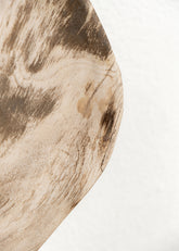 Her kesit, fosilin doğal damar yapısını ve milyonlarca yıllık hikâyesini görünür kılarak ortaya hem işlevsel hem de heykelsi objeler çıkarır.