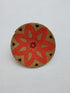 Doğal liflerle sıkı dokunmuş yuvarlak formu, turuncu çiçek motifi ve etrafındaki geometrik detaylarla birleşerek mekâna hem enerjik hem de sıcak bir atmosfer katar.