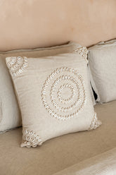 Bali Pamuk Kırlent – Deniz Kabuğu Sülemeli Doğal Tasarım