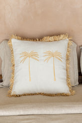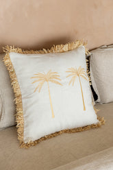 Bali Pamuk Kırlent – Rafya Saçak Detaylı Doğal Tasarım